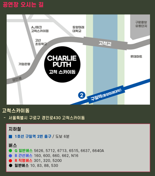 > TIP: 공연 당일에는 많은 인파가 몰릴 예정이니, 대중교통을 이용하거나 여유 있게 출발하는 것이 좋습니다.